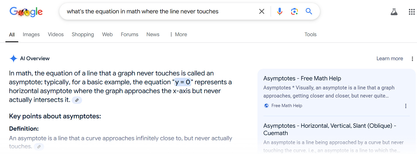 Let me give you a glimpse into how strong my memory of high school math is: I just googled, no joke: “what’s the equation in math where the line never touches.”